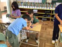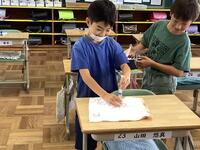 4年生「理科」の様子です。「空気と水」について学習をしています。今日は、「とじこめた水をおすと、中の水はどうなるだろうか」ということを考えていました。空気の場合との違いを調べました。空気と違い、水は全く押すことはできません。水の強さに驚いていました。