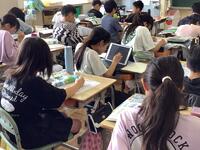 5年生「図工」の様子です。社会を明るくする運動のポスターです。仕上げ段階のようです。主役となる絵がはっきりしているか、文字がはっきりしているか、と自分が伝えたいことがはっきりしているポスターになっているかを確認しながら進めていました。