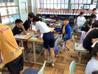 5年生「算数」の様子です。倍数・約数の学習です。今日は、公倍数について学習していました。2つのグループに分かれ、それぞれ決められた倍数の数が出たら、手を叩くということをしていました。それぞれがバラバラで叩いているのですが、同じ倍数になると、同時に叩かれます。このときの数が公倍数になります。楽しみながら公倍数について学習しています。