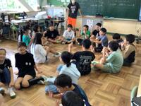 初めて縫い針を使うため、4名のボランティアが来てくれました。先生の説明を聞き、腕の長さに合わせて糸を切り、いよいよ針の穴に糸を通します。