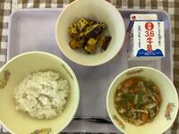 ☆麦入りご飯☆牛乳☆鯖の味噌煮☆ごま和え☆すまし汁