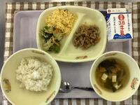 ☆麦入りご飯☆牛乳☆ビビンバ(肉・錦糸卵・ナムル)☆わかめスープ