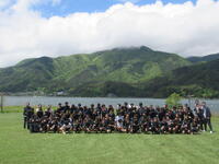 晴れてきたので予定どおりクラス、学年写真と湖畔で自由時間です。白鳥も歓迎してます。