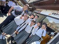 入村式を終えて民宿の方に連れられて各クラス、男女別の民宿に移動です。ここからは民宿の方々にお願いします。