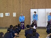 また、担当教員からは、「君たち中学生は、地域の戦力になる。そのために日頃から正しい行動がとれるように準備していきましょう。」という話がありました。
