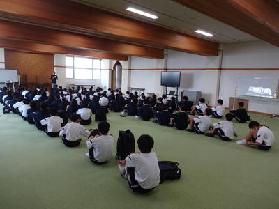 1年生は明日から校外学習です。今日は事前指導で学年主任の先生から連絡がありました。