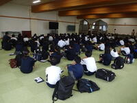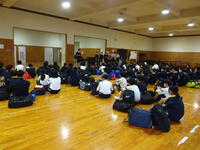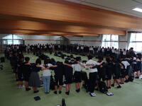 明日より、校外学習が始まります。スローガン「協力は成功のもと~101名分の協力でLet'sTRY!!~」を胸に、仲間と協力していい思い出を作りましょう。結団式の最後は、学年の生徒と教員、全員で円陣を組んで、気合いを入れていました。
