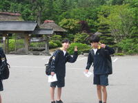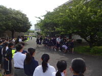 本日より、2年生の自然体験学習が始まりました。出発式が終わり、1年生に見送られながら山梨県に向かいました。