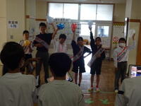 2,3時間目に、学年レクリエーションが行われました。まずは、「校内ポンポンリレー大会」です。風船をバトン代わりに、校内でリレーです。上に突きながら進み、18週!!レクリエーション係が、ライブ配信し、さらに校内放送を使って、中継しました。生徒たちの発想はすごいです。