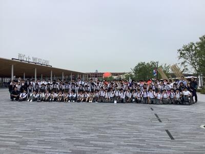大阪・関西万博会場に到着しました。全員で記念撮影。