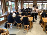 駿府匠宿で箸作りを体験中です。みんな、真剣な表情です。ぜひ、家で使いましょう!
