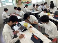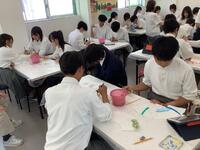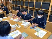 京扇子の絵付体験です。どんな扇子になるか完成が楽しみです。