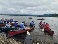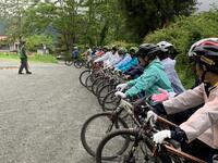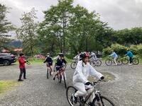 アクティビティ、マウンテンバイクです。このあと、ちょとした山に行きます。釣りとカヌーも安全な場所で体験です。