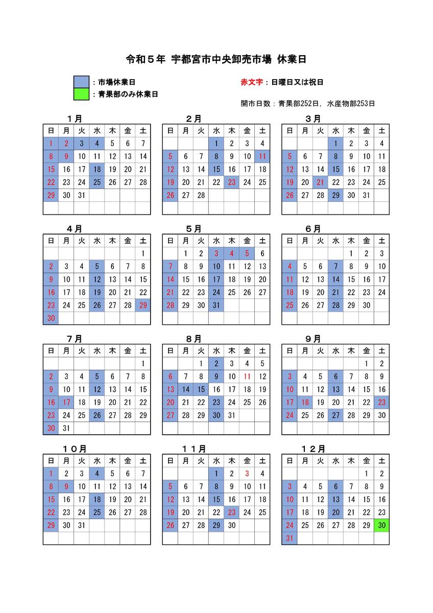 宇都宮市中央卸売市場カレンダー