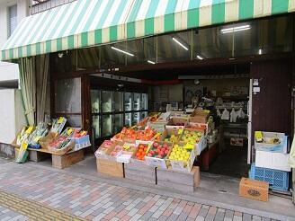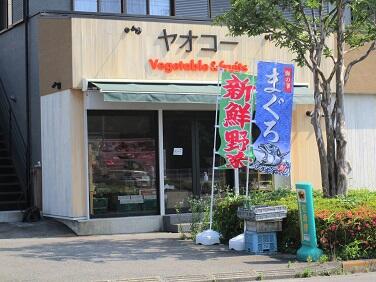 森林公園入口交差点にあるお店です。親子二代の家族経営で野菜や果物の他、鮮魚も販売しています。高齢者のお宅に配達するサービスも行っています。