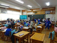 ごん、兵十、ナレーター、リコーダーの役割を決めた後、場面ごとのグループに分かれ、子供たちで話し合いながら、台詞や動き、小道具の製作に取りかかっていました。子供たちが主体となって意欲的に取り組み、楽しそうに表現している姿が見られ、素晴らしかったです。