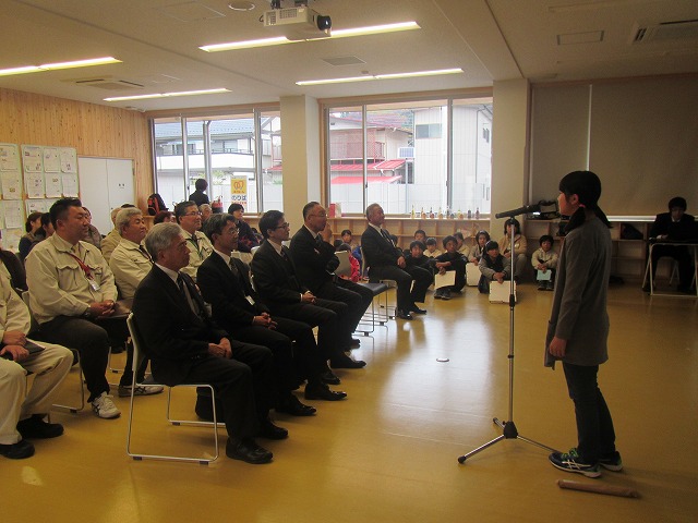 5年生が、ふみの森もてぎで古口町長さんや国土交通省の方々、調べ学習でお世話になった町役場の職員、保護者の皆様の前で、道路の役割についての発表を行いました。