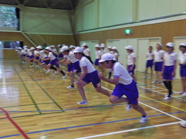 明日の大会、来週の町陸上記録会に向けて、今日は体育館での練習になりました。