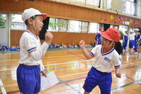 今日は、2時間目に1・2年生で一緒に遊ぶ会をしました。2年生が計画し、1年生を招待して実施しました。7つのグループに分かれて、へびおにや、だるまさんの一日、しっぽ取りなど、楽しく遊びました。1年生は、「2年生と一緒に遊べて楽しかった!」と話してくれました。2年生は、今日に向けて遊び方の説明などたくさん練習してきたので、「喜んでもらえてよかった。」「これからも1年生と仲良く遊びたいな。」と達成感でいっぱいでした。