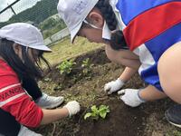 2年生は、今日の3・4校時に農園活動を行いました。以前に植えたジャガイモの土寄せと、ミニトマトの苗植えと、ポップコーンの種まきをしました。今回も農園ボランティアの松原さんに教えていただきました。今から収穫が待ち遠しい様子でした。