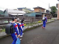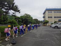 明け方の雷雨には驚かされましたが、雨の上がりの通学路を“茂木っ子”たちが元気に登校してきました。計画委員の「あいさつ運動」も行われていました。