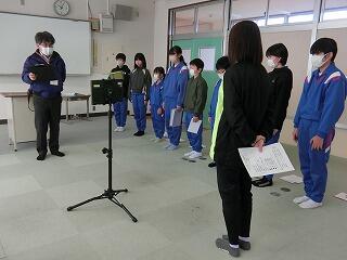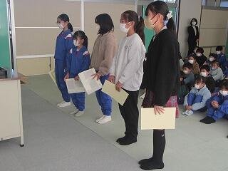 3月17日 卒業式の練習の後、卒業記念品の授与を行いました。