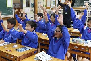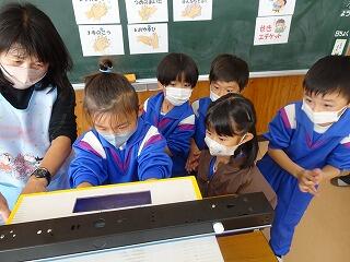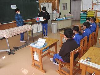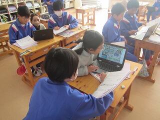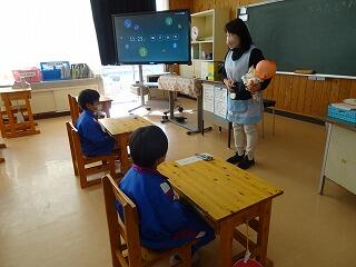 3月19日 1年生が逆川小学校の1年生とリモート授業を行いました。