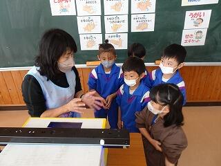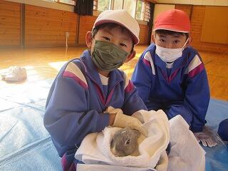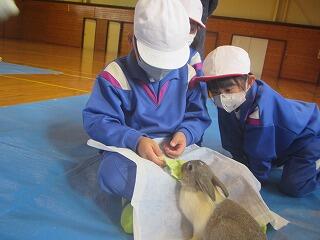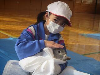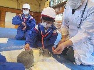 ウサギとふれあったり、餌やり体験、聴診器で心音を聞く活動などを通して、小さな動物も人と同じように生きているということを実感しました。