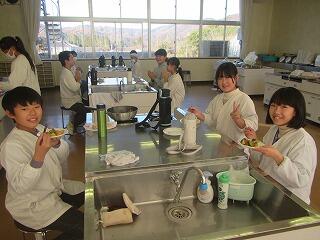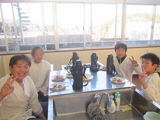 小学校生活の思い出や好きなもの、将来の夢などについて話しながら給食を食べました。