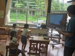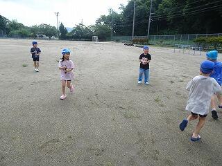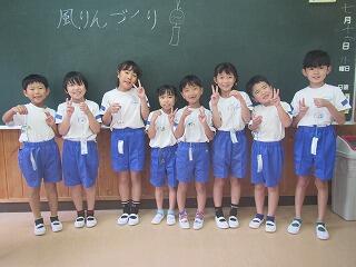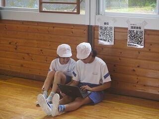 7月14日 児童数の少ない本校では、体育を2学年合同で実施しています。