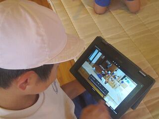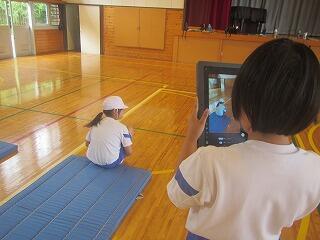 タブレット端末を効果的に活用し、掲示してあるQRコードで技の動画を視聴したり、お互いのやっている様子を撮影して確認し合ったりしました。