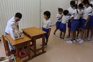 15日には3,4年生が、16日には1,2,5,6年生がお手玉やピンポン球を使ったゲームに参加し、折り紙で作った賞品をもらいました。