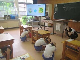 本校でも1学期中に防災に関する学級活動を毎年実施し、防災の知識・技能について学習し、「自分の命は自分で守る」意識がもてるように指導しています。