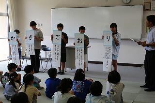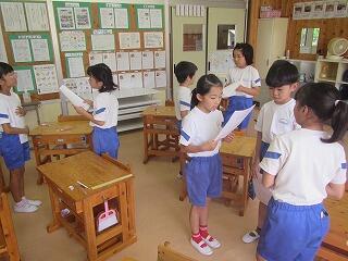 7月14日 1年生が国語で学習した「大きなかぶ」の音読劇をしました。