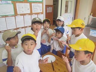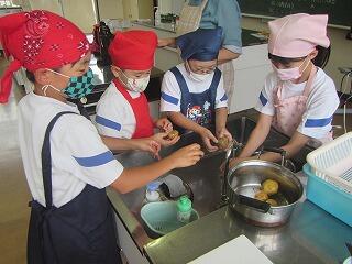 今日は3,4年生がじゃがいもをゆででみんなで食べました。