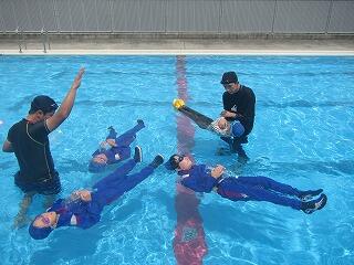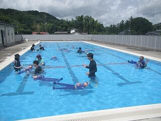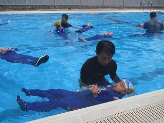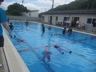 7月17日 「らっこ倶楽部」の方にご指導していただき、全校生が着衣泳を行いました。