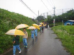◦10日は、低学年の子どもたちが、実際に学校周辺を歩きながら交通ルールについて学びました。雨の中、傘をさしながら頑張りました。