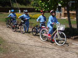 ◦11日は、中学年・高学年の交通安全教室でした。前庭の模擬道路・学校周辺道路での実地訓練を行いました。自転車の正しい乗り方や交通道徳について学ぶことができました。