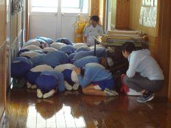 ◦本日、2校時終了時から焼森タイムの時間に地震を想定した避難訓練を行いました。