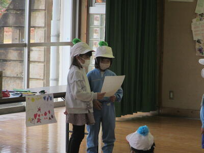 土曜授業として、学習発表会を体育館で実施しました。来賓として、学校評議員の方々をご招待しました。今年度は、全校生が体育館に入り、それぞれの学年の工夫した発表を見ることができました。特に、5・6年生の発表は、下級生にとって、目標となるような発表でした。また、全校合唱も復活しました。全校生の頑張りで、充実した学習発表会となりました。