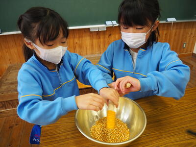 また、3年生から6年生は、更生保護女性会会の方からいただいたチューリップの球根を花壇を耕して植えました。