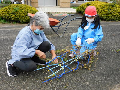 作物と土に感謝の気持ちも込めての片付けの活動です。