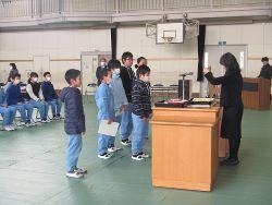 ◦修業式では、校長先生から各学年の代表児童に修了証書が授与されました。