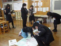 ◦ その後地域活動室で全体会を行いました。学力向上担当の飯山先生から本校の学力向上に向けた取組と成果と課題について説明を行いました。その後、訪問された3名の先生方から指導助言をいただきました。