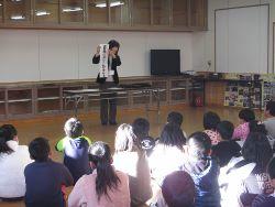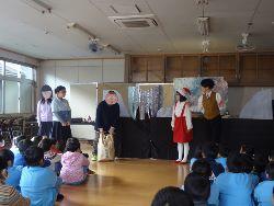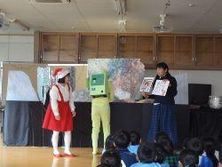 ◦ ちびまる子ちゃんの登場人物に扮装したオープニングから始まり、「にじいろのさかな」の小道具を巧みに操りながら読み聞かせに合わせて一生懸命に演じていました。心の奥に響くとても素晴らしい物語でした。