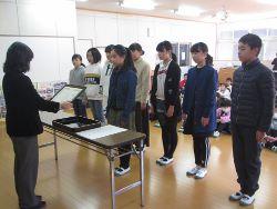 ◦ 今日は、焼森タイムの時間に学級委員任命が行われました。地域活動室で朝会を行う予定でしたが、インフルエンザが増加していため、校長室で学級委員のみで行われました。3学期の学級のリーダーとして頑張ってほしいと思います。