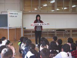 「2学期は、学校行事がたくさんありました。2学期の最初に『目標に向かって努力する』ということを話しました。自分のことを振り返ることは、目標を立てることと同じくらい大切なことです。通知表からも3学期の目標が見えてくると思います。家の人と一緒に3学期の目標を立ててみてください。そして、冬休みに二つしっかりやってもらいたいことがあります。それは、『家のお手伝い』と『あいさつ』です。楽しく安全な冬休みを過ごして、3学期は、元気に学校に来てください。」