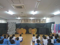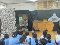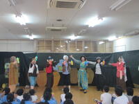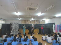 児童も歌や踊りを交えたお話の世界に入り込み、真剣に参加することが