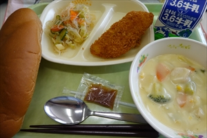 メンチカツ ポテトサラダ ようふう玉子スープ