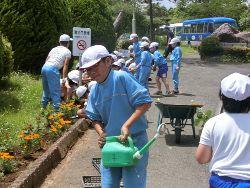 ○3校時には、グリーンタイムがあり、全校生でサルビア・マリーゴールドの花を学校坂・前庭・玄関前等に植えました。